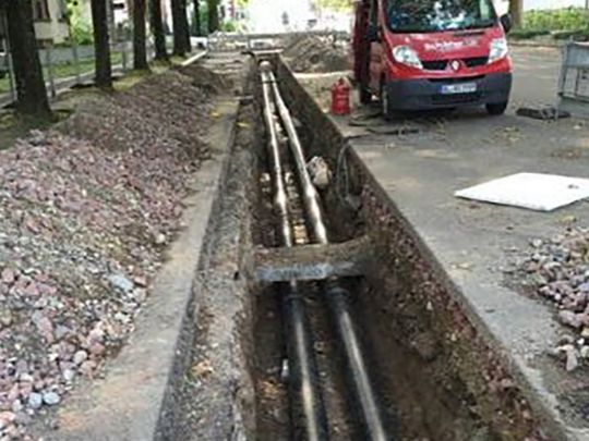 Bei der Erweiterung des Fernwärmenetztes übernahmen wir die Tiefbauplanung und die Betreuung der Ausführung vor Ort.